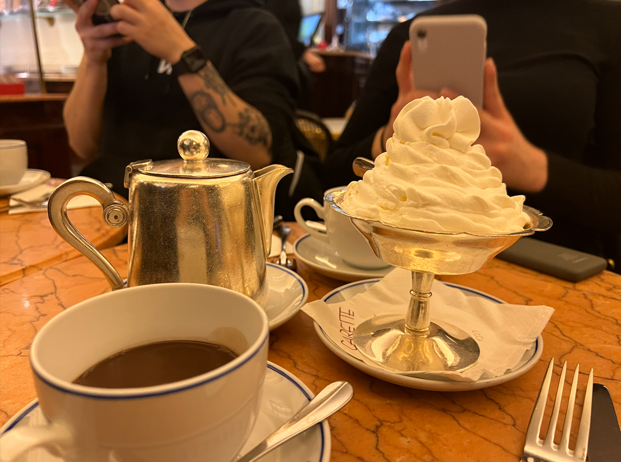 Delicious traditional hot chocolate with cream